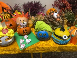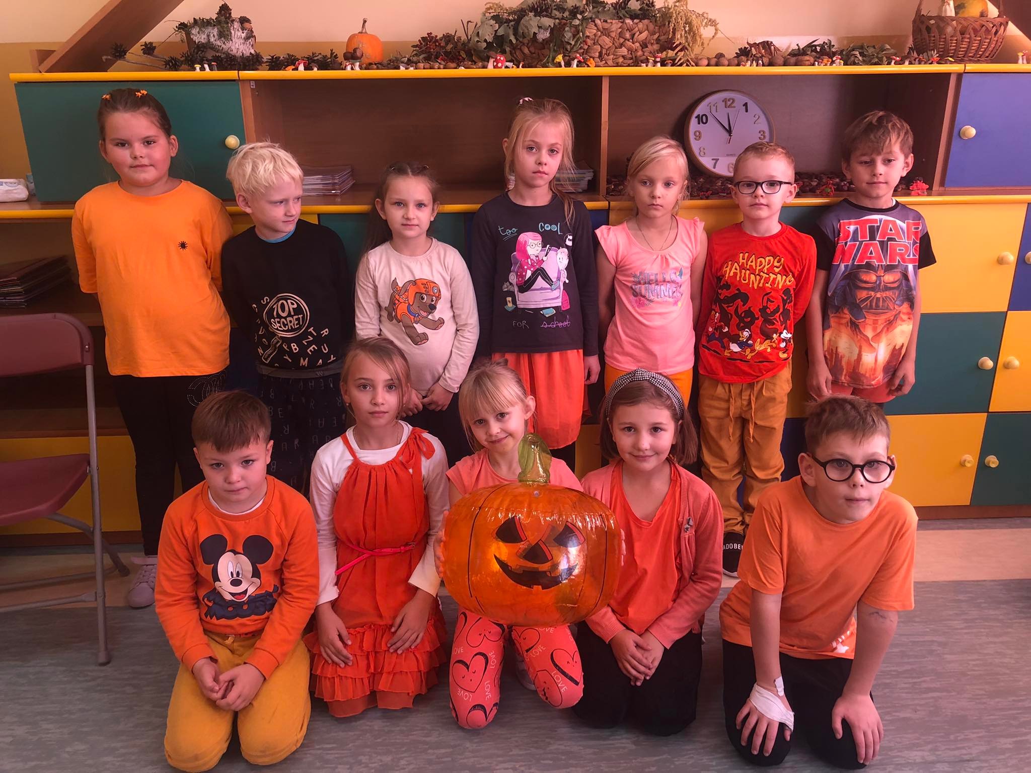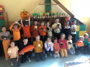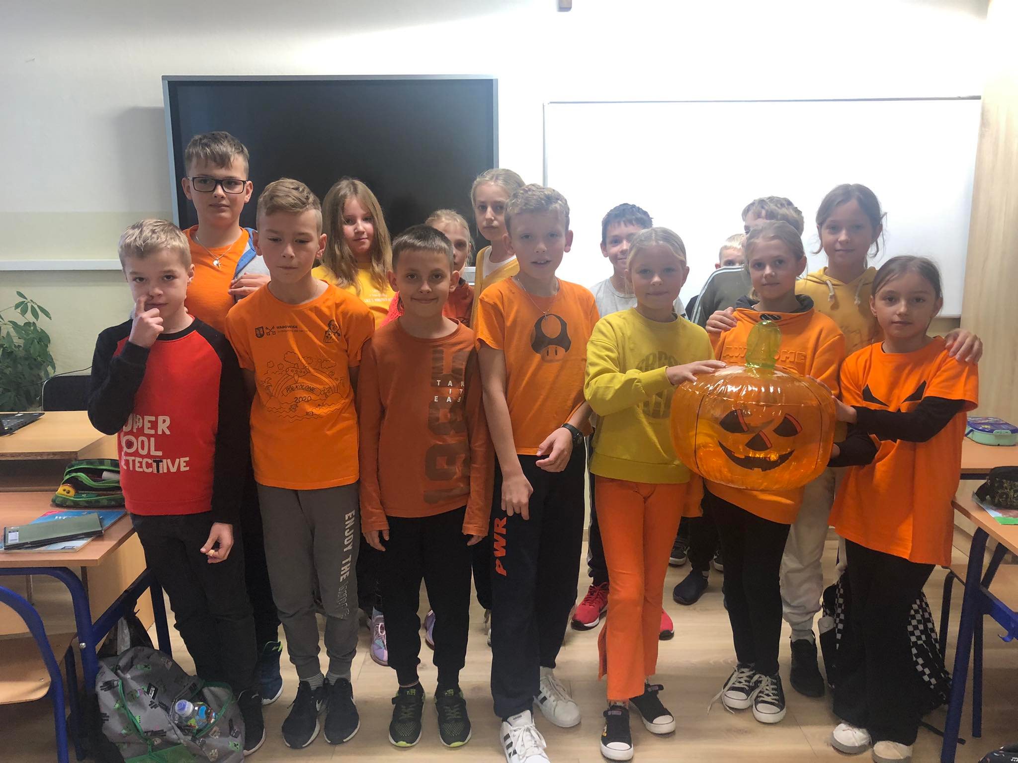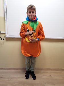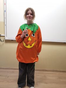 31.10 obchodziliśmy Dzień Dyni. Z tej okazji Samorząd Szkolny zorganizował dwa konkursy – na najbardziej pomarańczową klasę oraz na najciekawszą ozdobę dyniową. Zadaniem uczniów w pierwszym konkursie było ubranie jak największej liczby pomarańczowych elementów garderoby, a w drugim wykonanie pomysłowej ozdoby „dyniowej, nie halloweenowej”. O ile konkurs na najbardziej pomarańczową klasę rozstrzygnąć było dość łatwo, o tyle kreatywność w tworzeniu dyniowych ozdób przerosła najśmielsze oczekiwania. Dyniowych stworów było bardzo dużo i wszystkie zasłużyły na pochwałę! Wyniki obu konkursów ogłoszone zostaną na najbliższym apelu. Koniec października to także czas „strrrrrraaaasznych lekcji angielskiego”, a to dlatego, że w krajach anglojęzycznych 31.10 świętuje się Halloween.