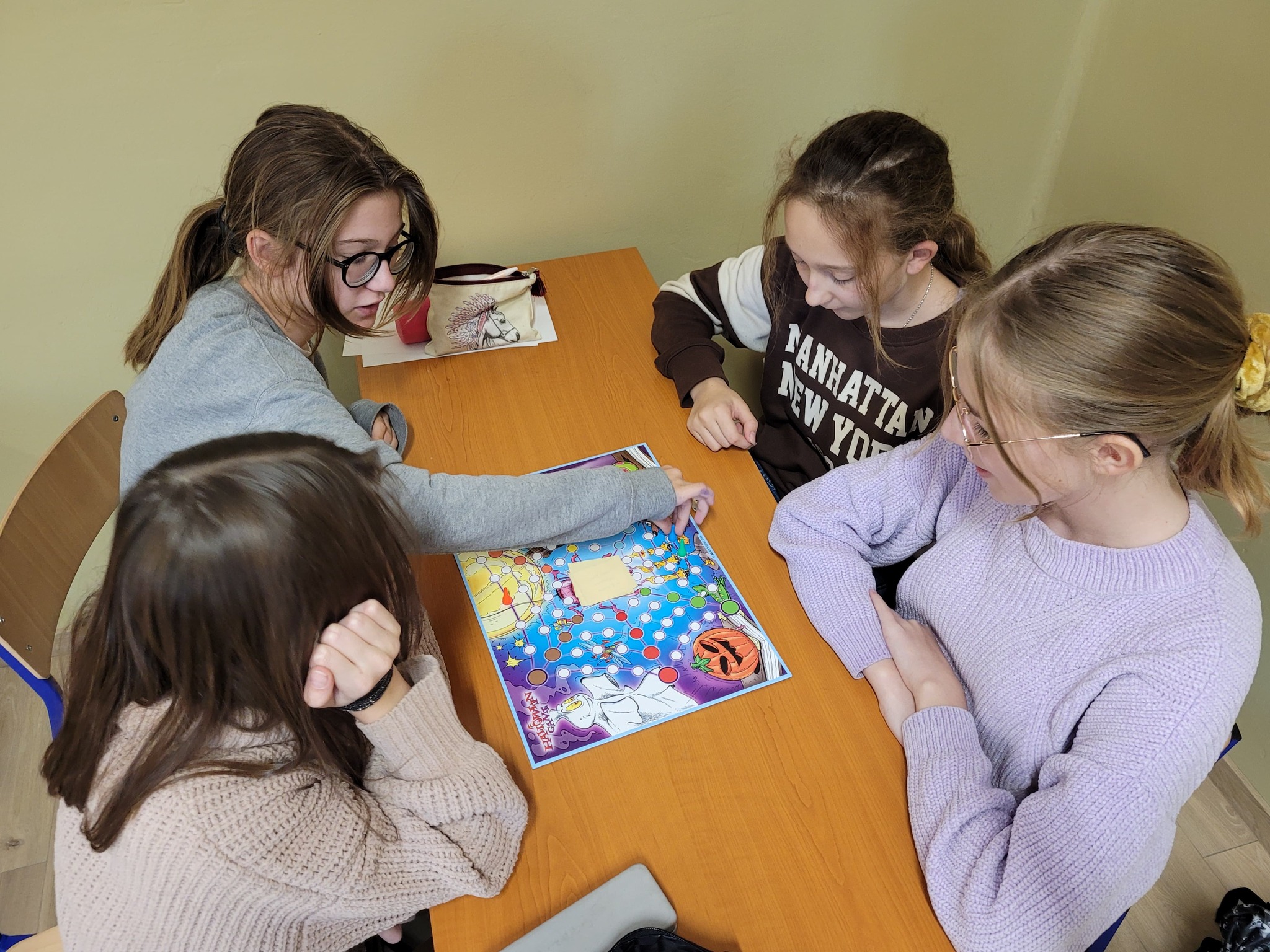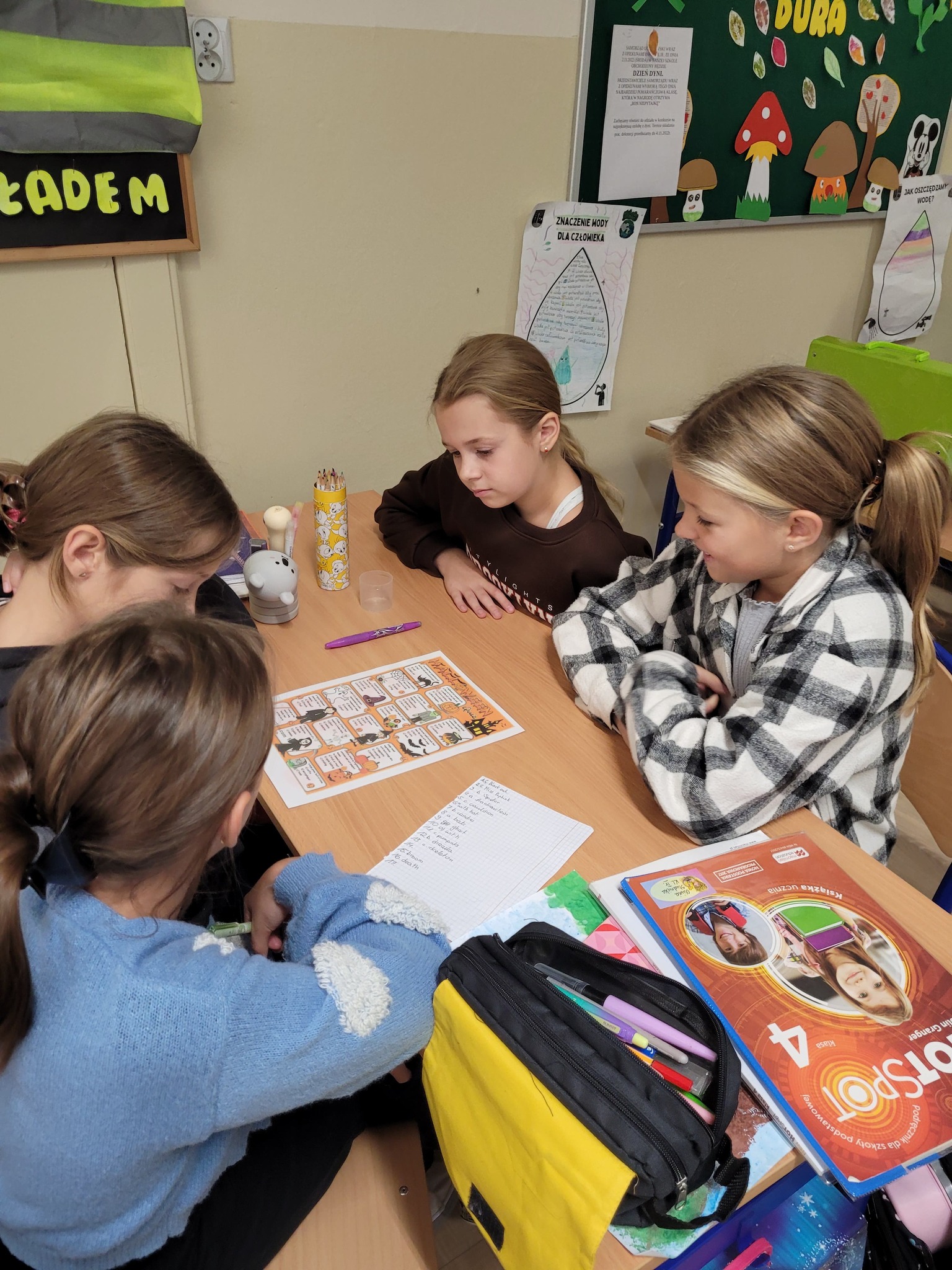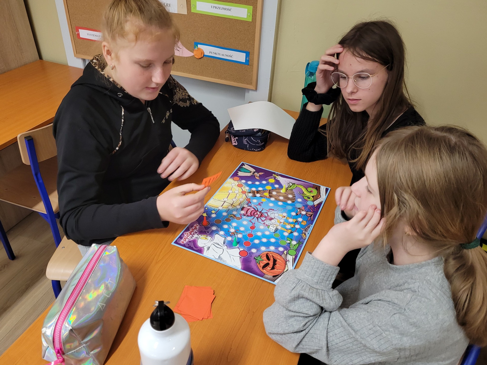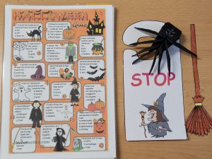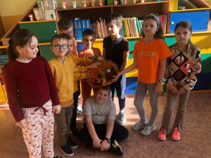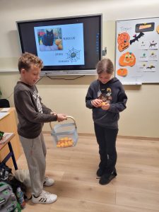 Uczniowie mieli okazję obejrzeć prezentację multimedialną na temat tego święta, uzupełnić karty pracy, rozwiązać Halloweenowe quizy, zagrać w gry planszowe, a także wziąć udział w zabawie „”Poke the Pumpkin”.