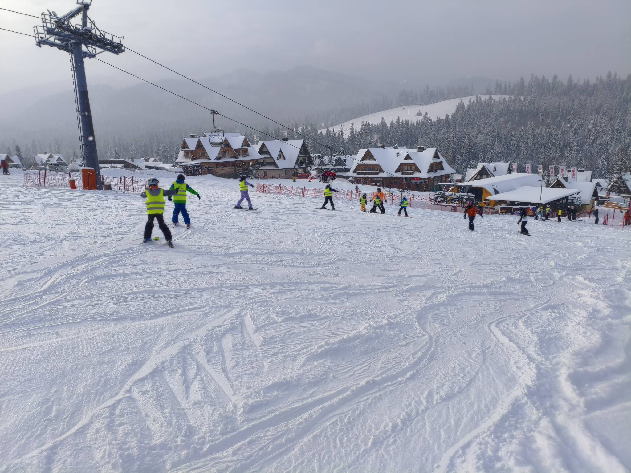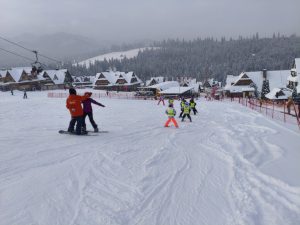Małe Ciche – biała szkoła działa na całego, zima wznowiła działanie, humory dopisują, umiejętności narciarski rosną.